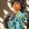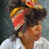 ÉCLAT (glow in French) Headwrap bursts with life in multicolored African prints finished with comb-shaped golden detailing. Inspired by the burst of colors, the golden comb shaped accents and the purity of the white font, the ÉCLAT headwrap symbolizes vitality, resilience, and joy. Her satin-lined interior locks in moisture and shields your hair, ensuring beauty and protection with every wear. Versatile for casual days or statement evenings, ÉCLAT is easy to tie and crowns you with light, radiating Afrocentric pride and modern flair.