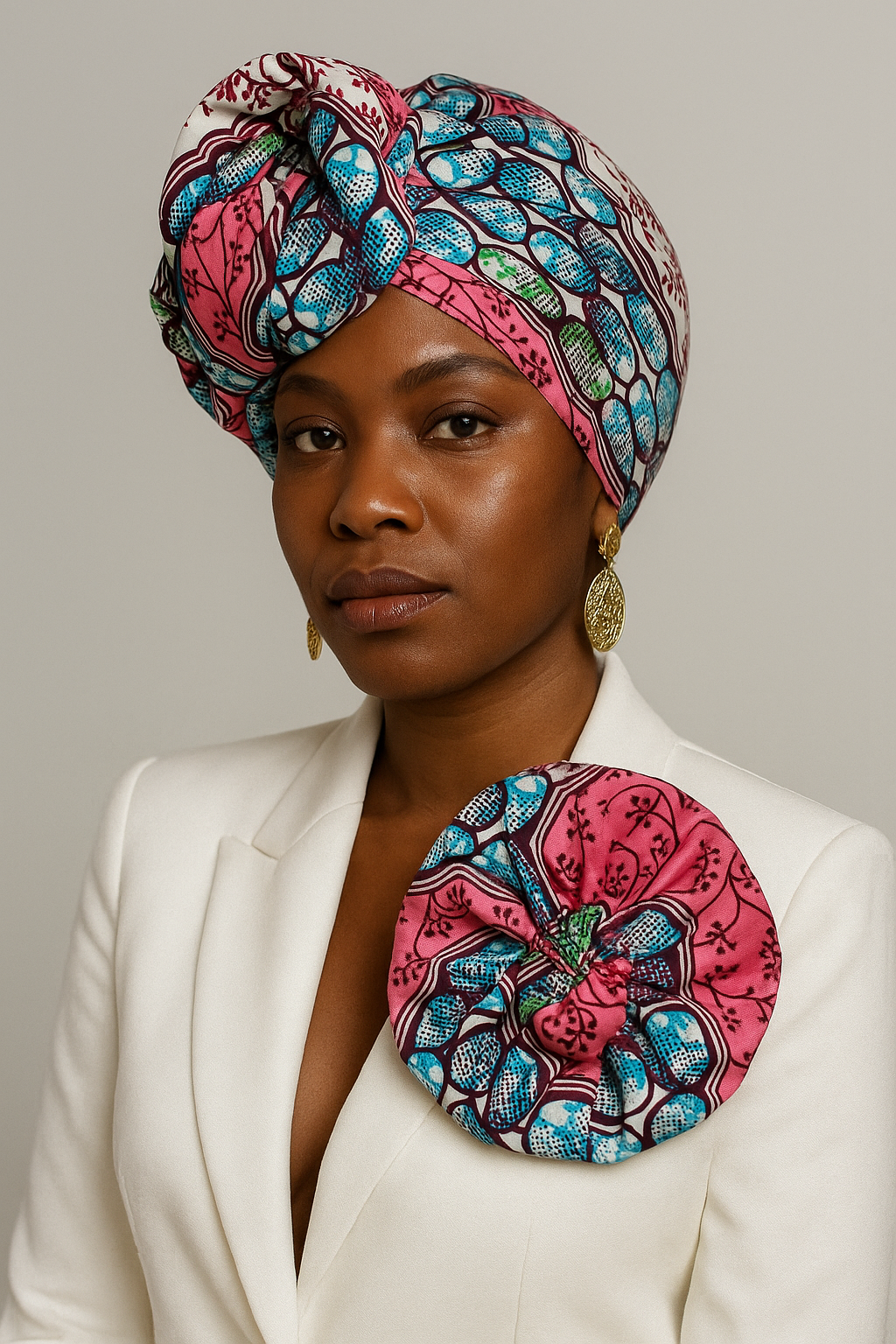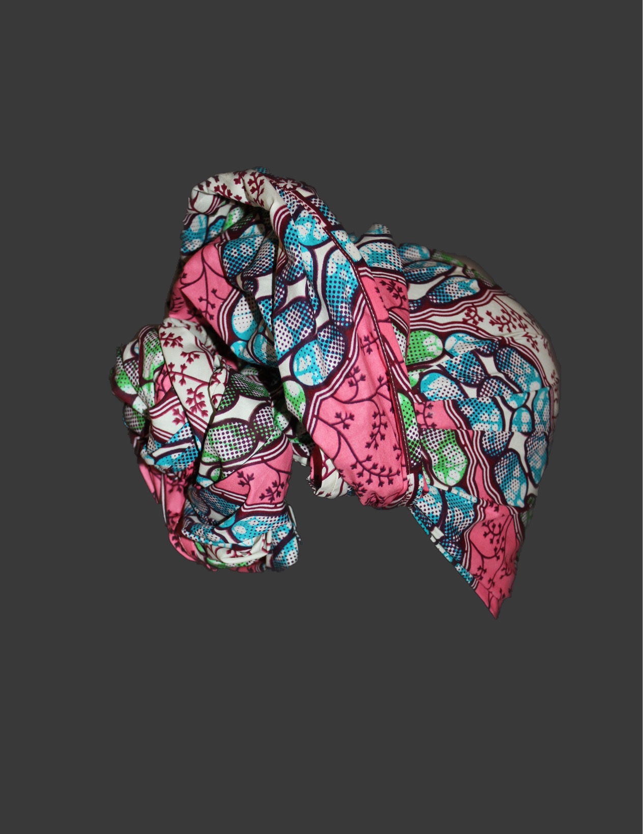 Crafted from premium African print fabric, the Spring Bloom headwrap’s hues echo the calm of early morning blooms and the confidence of a woman owning her light.